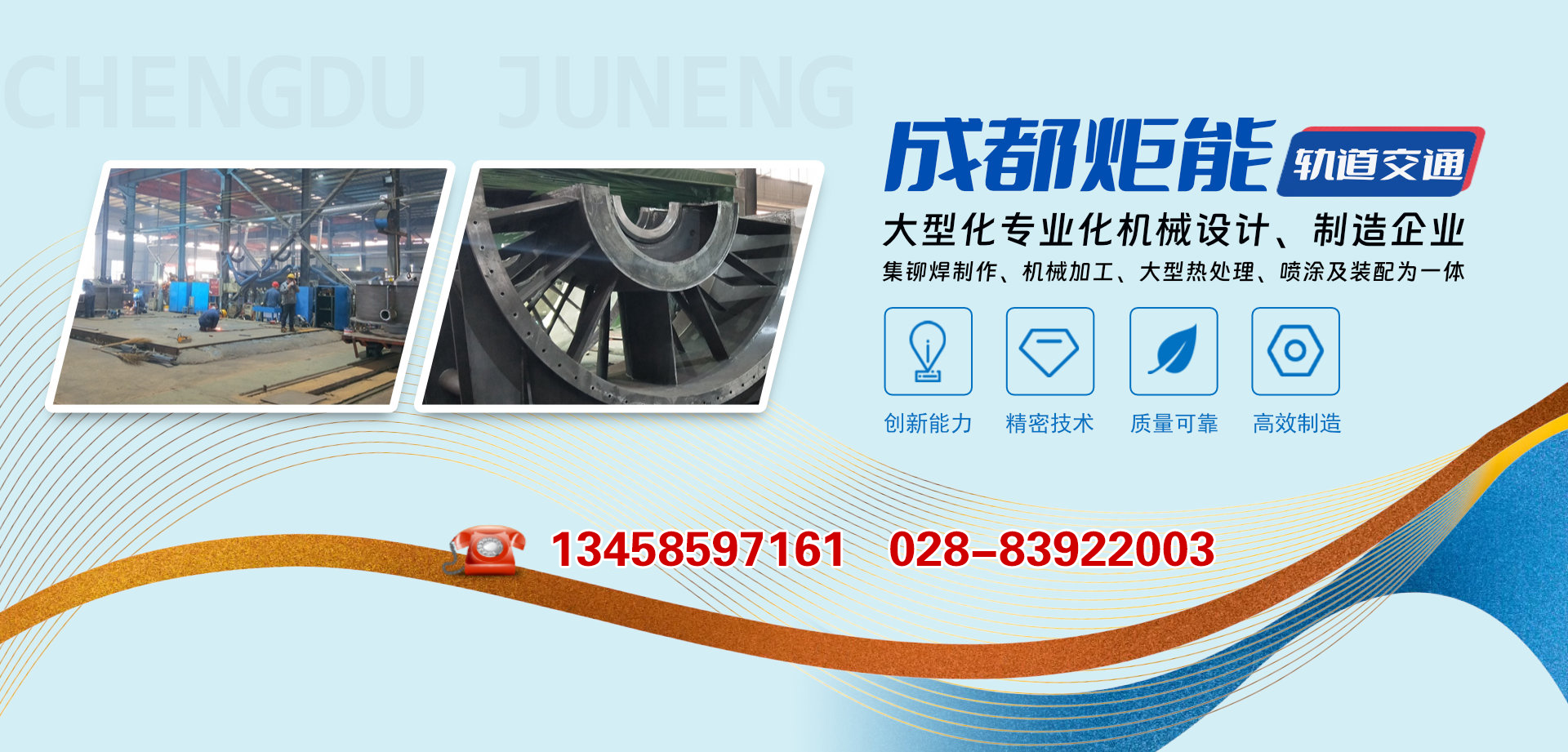 成都炬能軌道交通裝備有限公司位于成都市新都工業(yè)東區(qū)新工大道860號(hào),位置優(yōu)越,距成都市區(qū)17公里,距京昆高速的新都南站和北站5公里左右,與青白江工業(yè)區(qū)毗鄰。公司是一家集機(jī)器人自動(dòng)焊接設(shè)備、汽車(chē)夾具設(shè)計(jì)與制造、火力發(fā)電大型風(fēng)機(jī)制造、鉚焊制作、機(jī)械加工、大型熱處理、裝配為一體的大型、專(zhuān)業(yè)化機(jī)械設(shè)計(jì)和制造企業(yè)。公司屬成都市規(guī)模以上企業(yè)、成都市模范勞動(dòng)關(guān)系和諧企業(yè)、成都市安全標(biāo)準(zhǔn)化建設(shè)達(dá)標(biāo)企業(yè)。公司目前擁有...